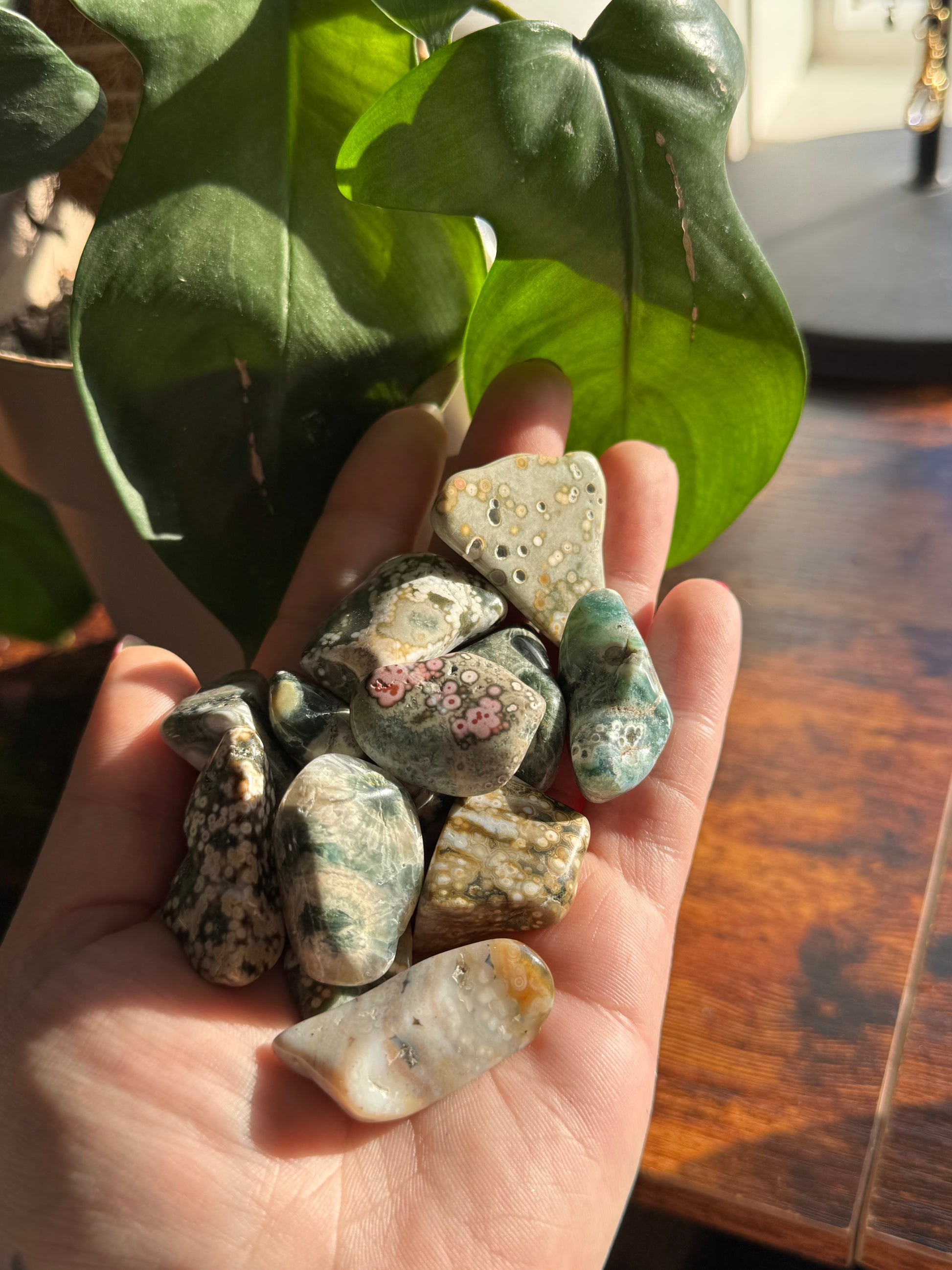 1pc high quality, very rare 8th Vein Ocean Jasper Tumble, intuitively chosen, varying in color and shape. This type of jasper is considered rare due to the mine being closed in 2021, after the Vein was mined out. consciously sourced, every order comes with a free scoop of crystal confetti. (if unwanted please write in notes or contact via email)