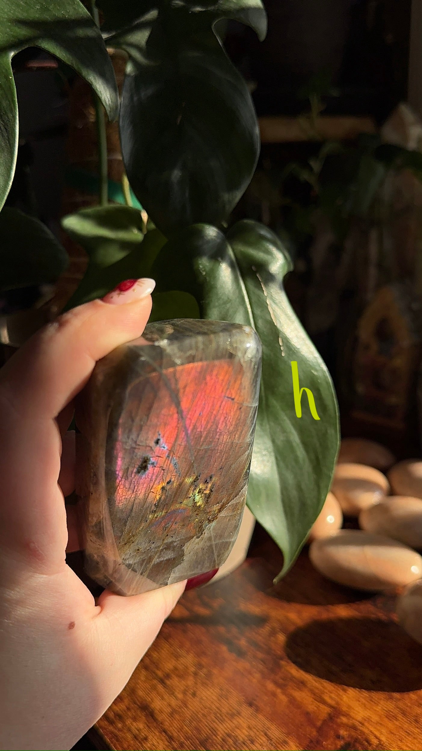 Choose your own high quality flashy Sunset Labradorite Freeform. consciously sourced, every order comes with a free scoop of crystal confetti. (if unwanted please write in notes or contact via email)